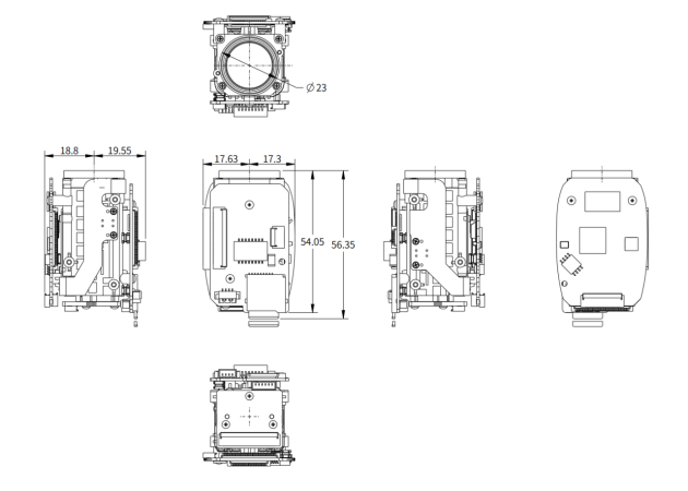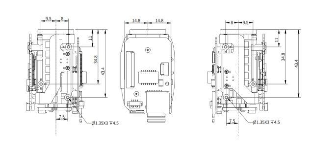 Porta Ethernet de 4pin, 6pin Power & Uart Port , Porta de áudio de 5pin. |