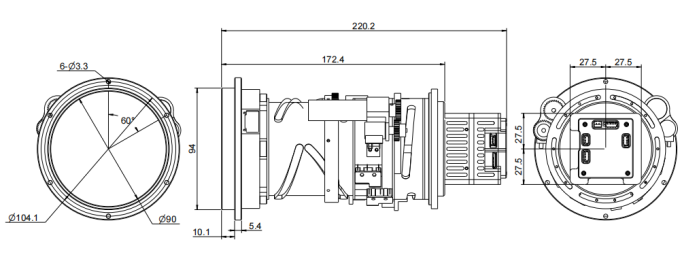 Φ110 (flange) × 221mm, φ120 (Dimensão geral do máximo) |