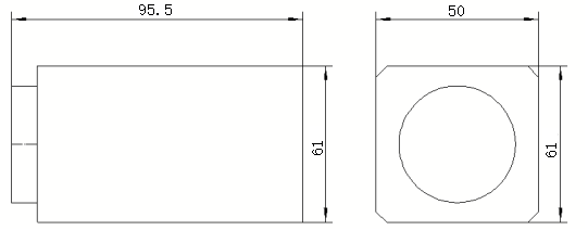 95,5 mm*50mm*61mm (124mm*51mm*56mm com a placa de cauda) |