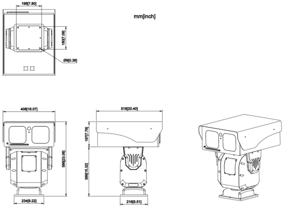 Pan: 360 ° Gire; Tilt: - 70 ° ~+20 ° |
