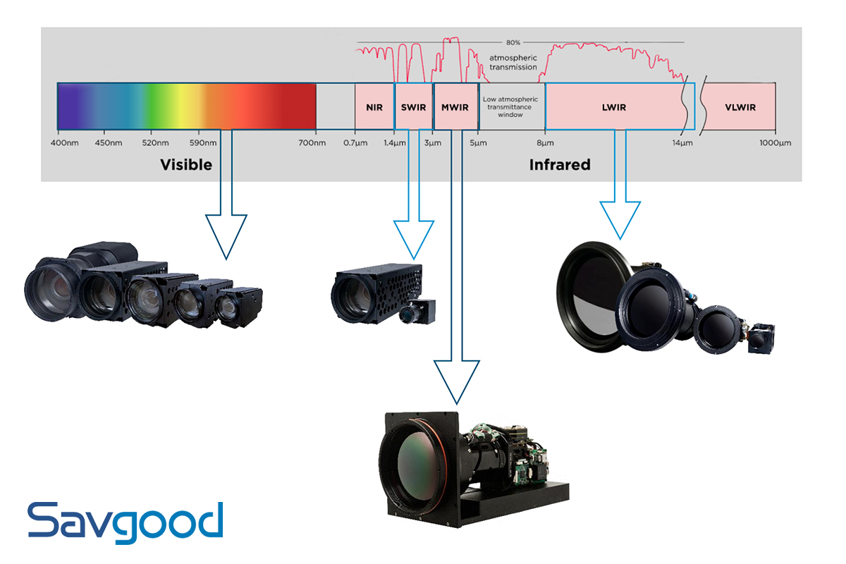 O módulo SavGood Swir Cameras pode cobrir 1000 ~ 1700nm Banda espectral de onda curta, com lente fixa e lente zoom swir, até 510mm de distância focal, suporta rede + saída dupla SDI.